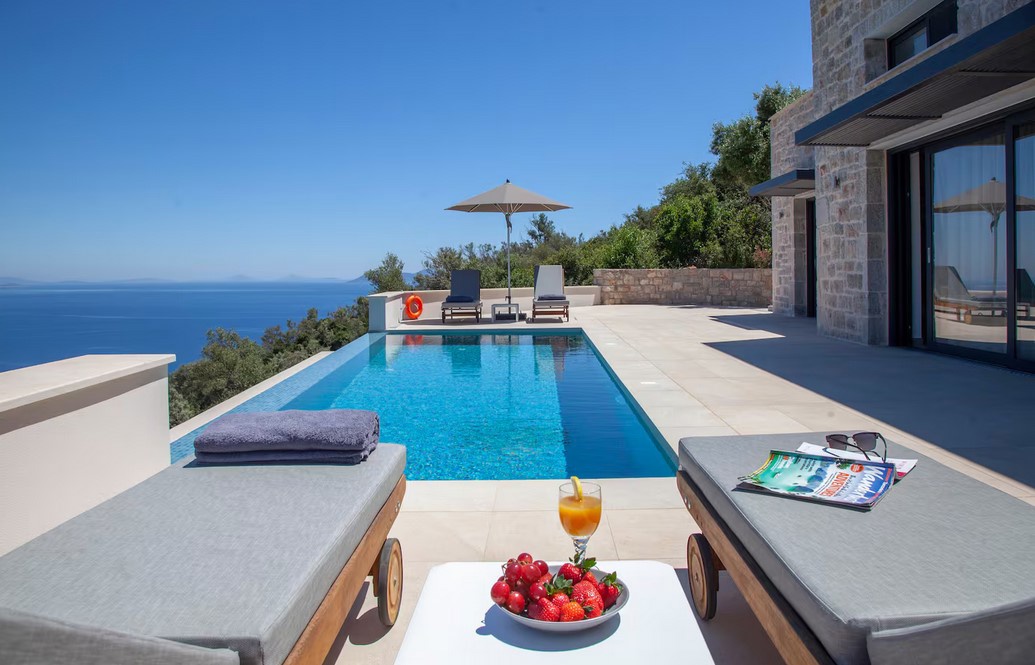 Der Außenbereich der Residenzen wurde mit viel Liebe zum Detail gestaltet und bietet üppige Gärten, Natursteinmauern, die für Privatsphäre sorgen, ergänzt durch elegant möblierte Wohnräume im Innenbereich, in denen Sie die herrliche Aussicht genießen können. Jede Villa verfügt über einen separaten Eingang, große Veranden, auf denen man den Sonnenuntergang genießen kann, sowie einen beeindruckenden privaten Infinity-Pool, der das Gefühl vermittelt, eins mit dem Meer zu sein.
